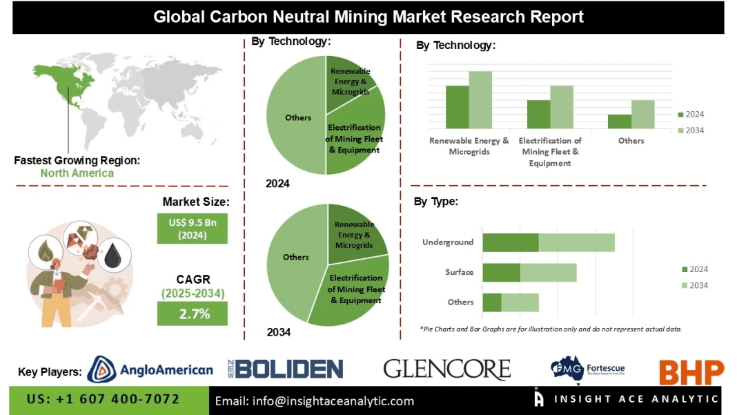 InsightAce Analytic Pvt. Ltd. announces the release of a market assessment report on the “Global Carbon Neutral Mining Market Size, Share & Trends Analysis Report By Technology (Renewable Energy & Microgrids, Electrification of Mining Fleet & Equipment, Energy Storage & Charging Infrastructure, Low-Carbon Fuels, Carbon Capture, Utilization & Storage, Emission Monitoring & Digital Solutions, and Others), By Mine Type (Surface, Underground, and Others),-Market Outlook And Industry Analysis 2034″