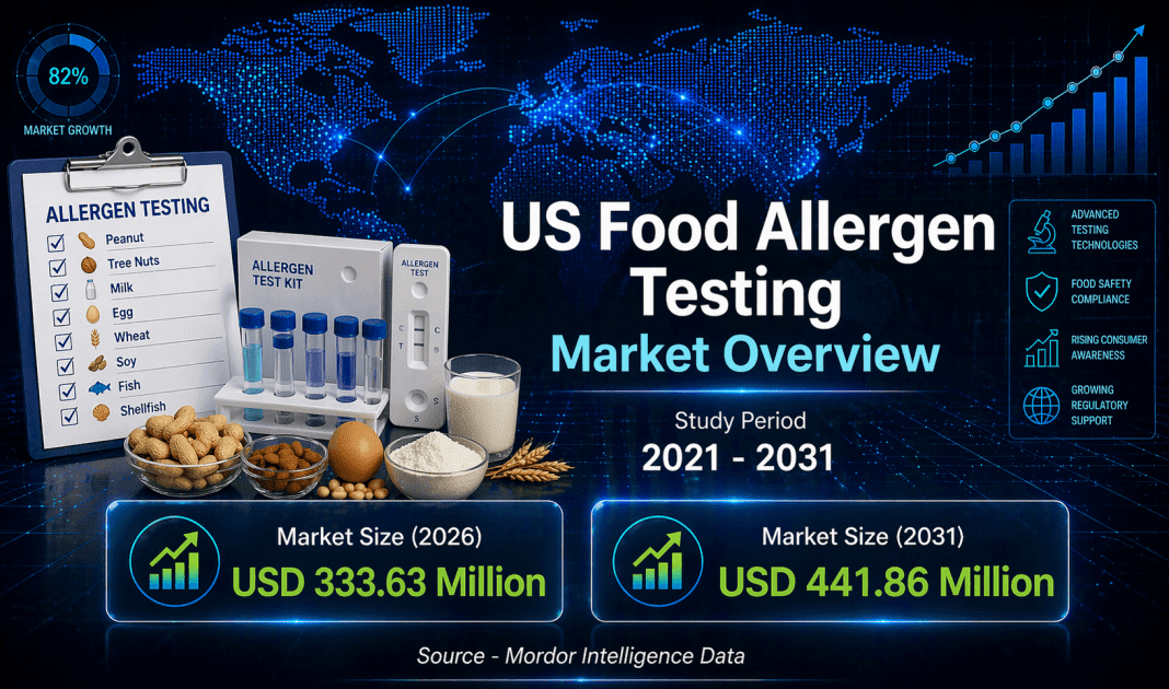 According to a research report by Mordor Intelligence, the US food allergen testing market is witnessing steady expansion as food safety continues to remain a top priority across the country. The United States food allergen testing market size is estimated at USD 333.63 million in 2026, growing from USD 315.4 million in 2025 and projected to reach USD 441.86 million by 2031, at a CAGR of 5.78%. This growth reflects increasing regulatory oversight, rising cases of food allergies, and the need for accurate detection methods across food production systems.
